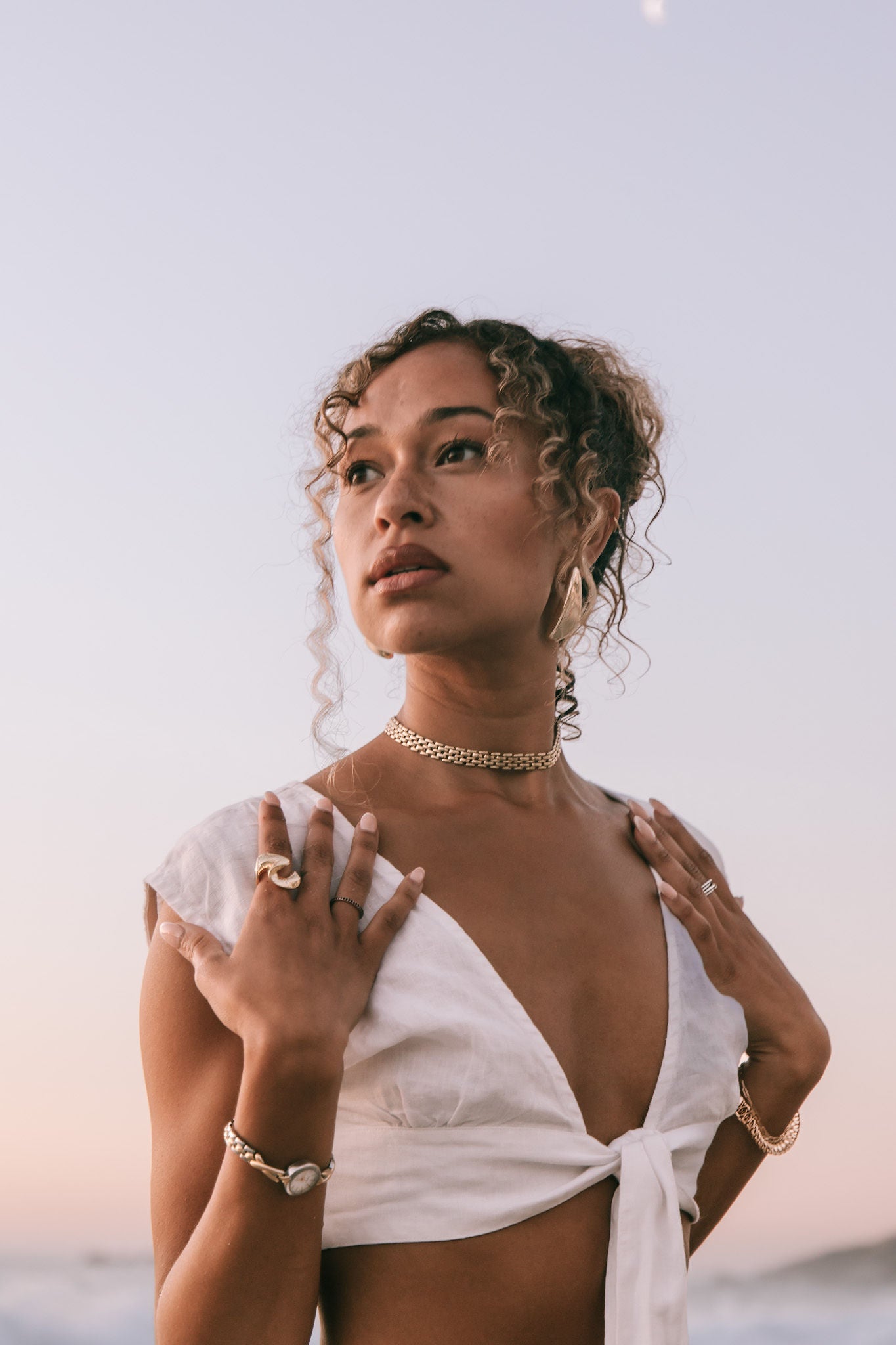 Our best seller, designed with the wide over the shoulder cut. No fast fashion here - our threads are built to last. The wrap tie allows you to adjust the top comfortably and the ruched stitching helps enhance and lift your bust. Get the full, chic look and match this top our Catherine trousers. If you have broad shoulders we recommend sizing up for a more comfortable fit.