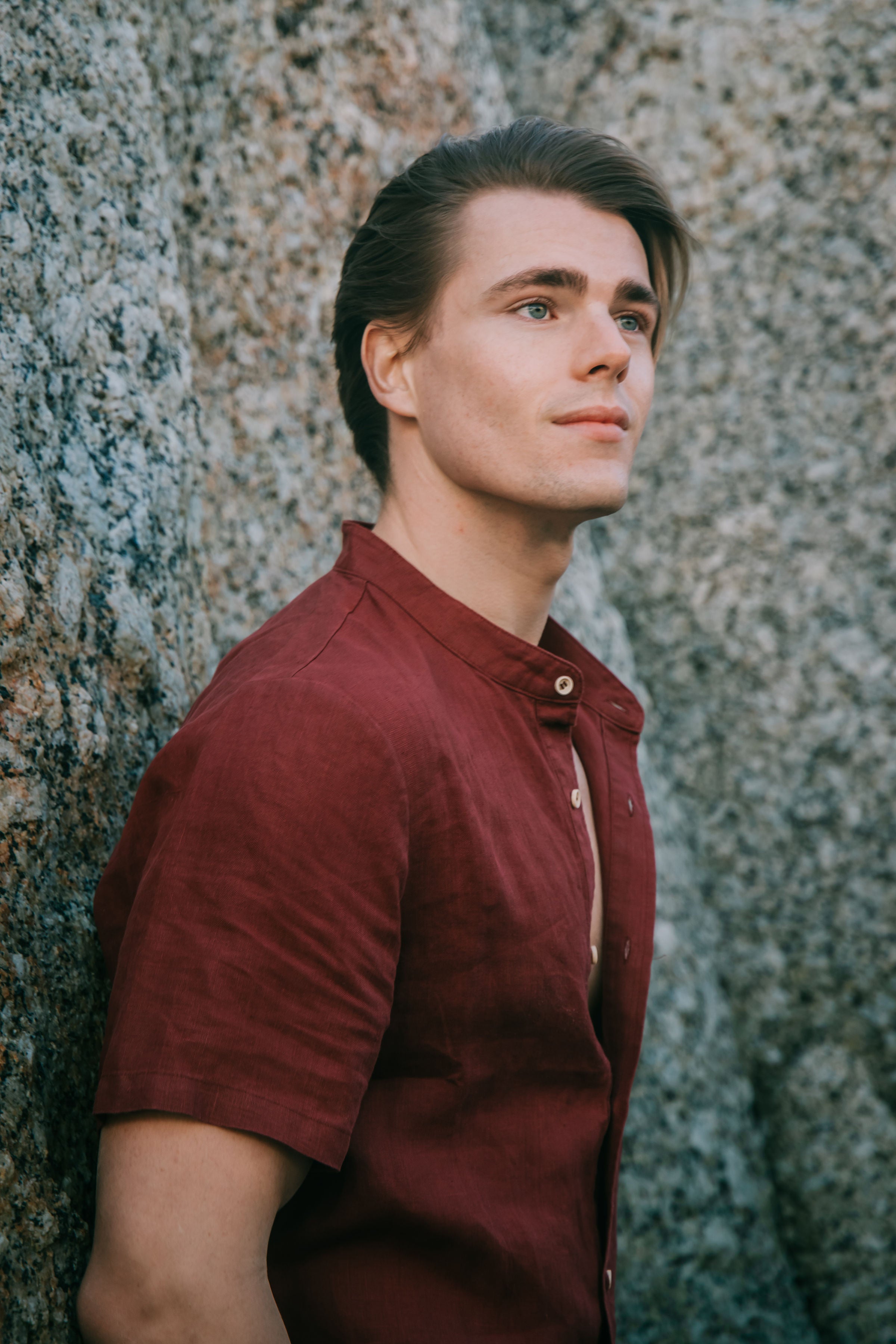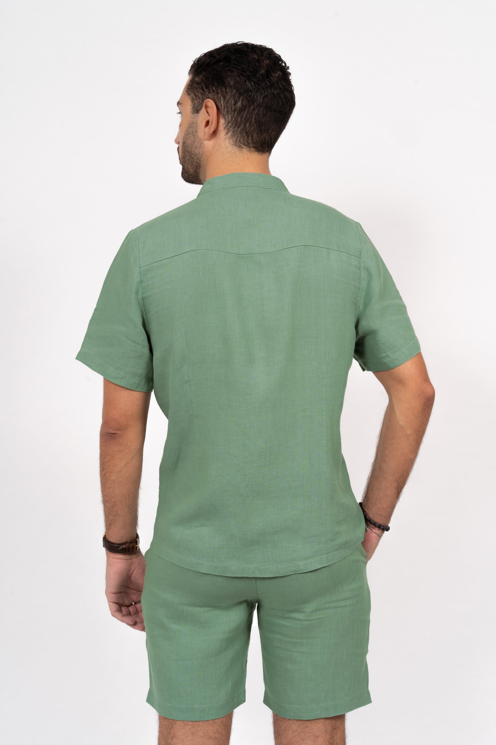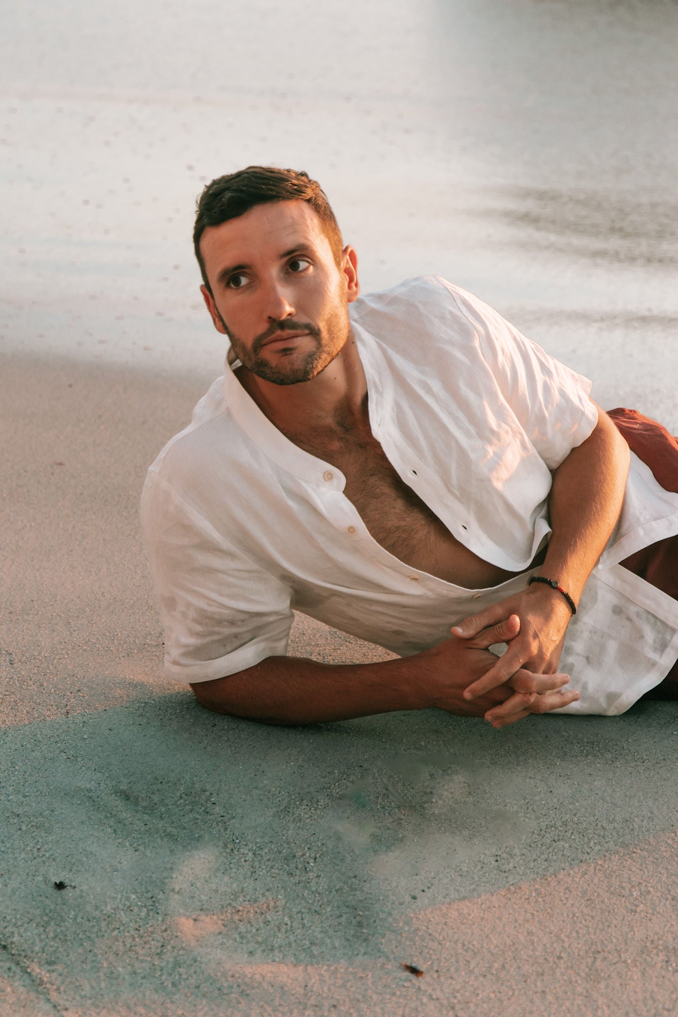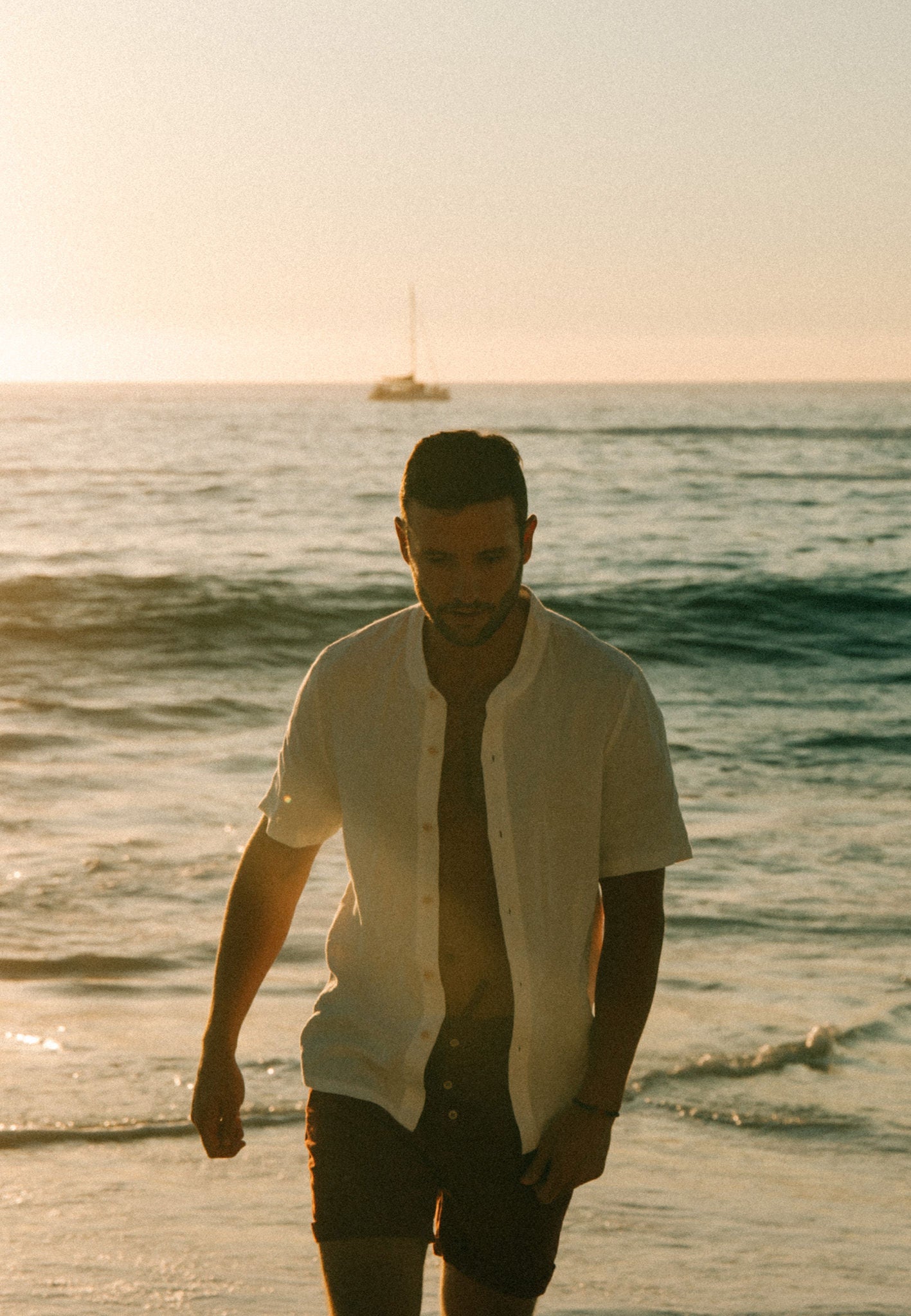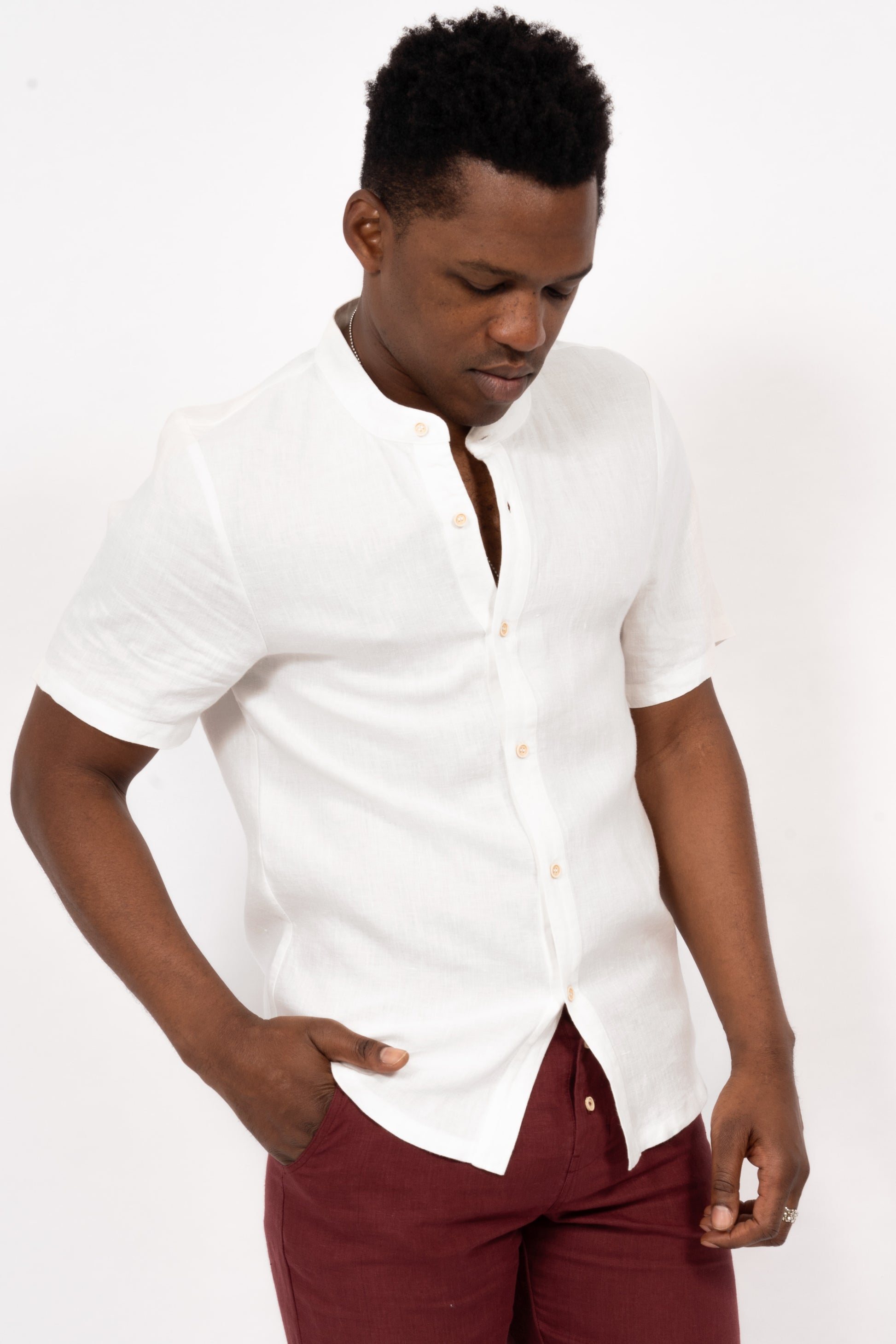 Kai is our short sleeve mens top, designed to be ever so slightly scooped so it falls right around the collarbone. This pocket-less look can be versatile for any event, It looks even better with a few buttons undone. With two back seams, it is fitted to fall nicely and shape your torso. Match with our Gilbert shorts for your next event.